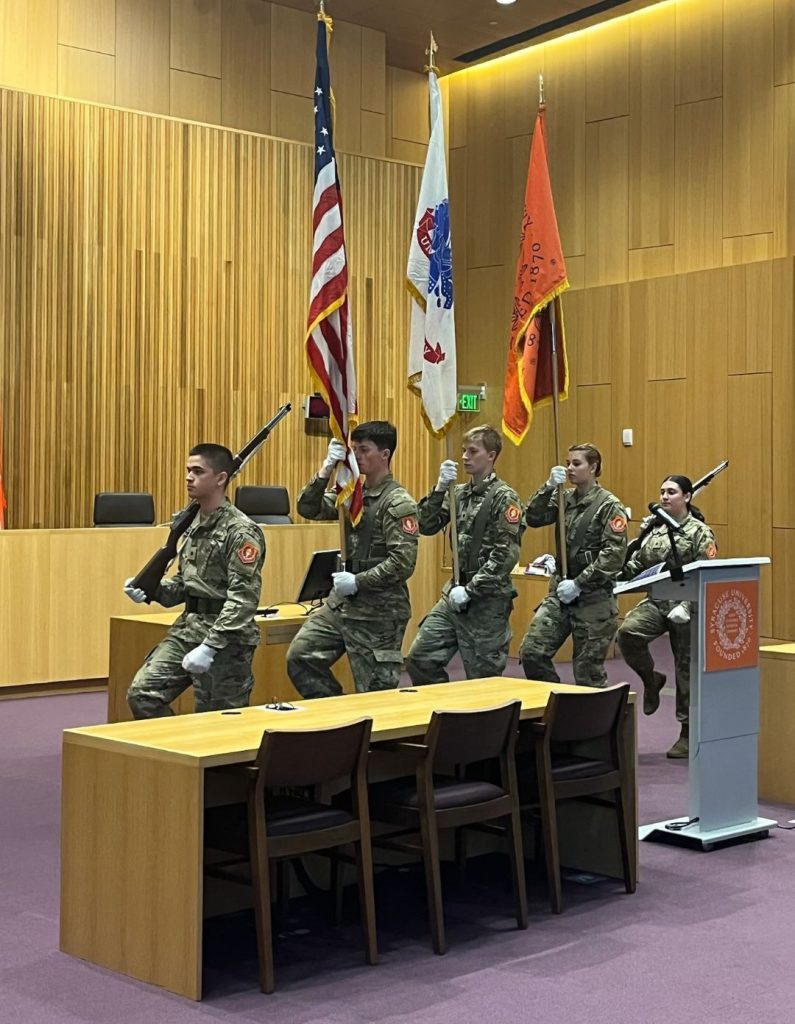 The College of Law hosted its 8th annual Veterans Day Ceremony and Celebration, highlighted by four Syracuse Law student-veteran speakers who discussed their service experiences.