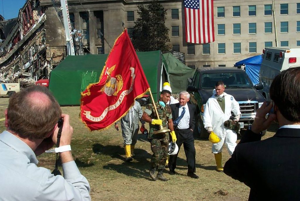 On Sept. 13, the group recovered a Marine Corps flag that was standing in the wreckage, perched on the edge of a 4th floor office that had been split in half by the gaping hole left in the Pentagon. The flag had somehow survived the attack unscathed. The group returned the flag to the Marine Corps, where it would symbolically become a reminder of the events of that week. What began as a quiet act of service became a symbol of resilience and commitment to country — and a story that continues to inspire more than two decades later.